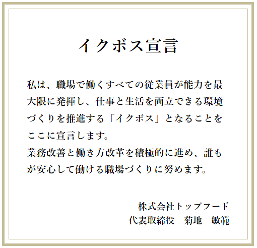 当社は、従業員が安心して長く働ける職場をつくるため、イクボス宣言を行いました。