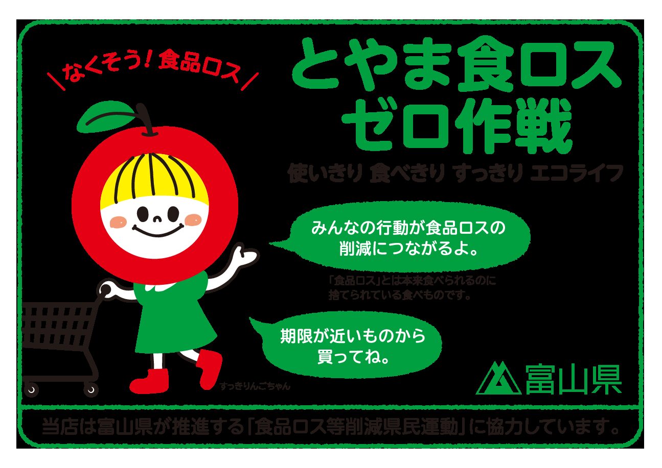 当社は、この考え方に賛同して、「とやま食ロスゼロ作戦」ここに宣言します。